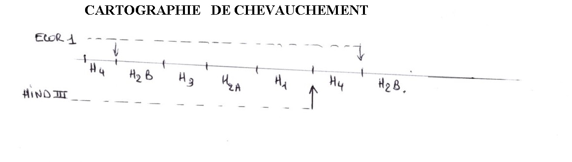 -ECOR1 coupe toujours au niveau d'une séquence cible entre H4 et H2B. On obtient un fragment avec 5 Gênes.