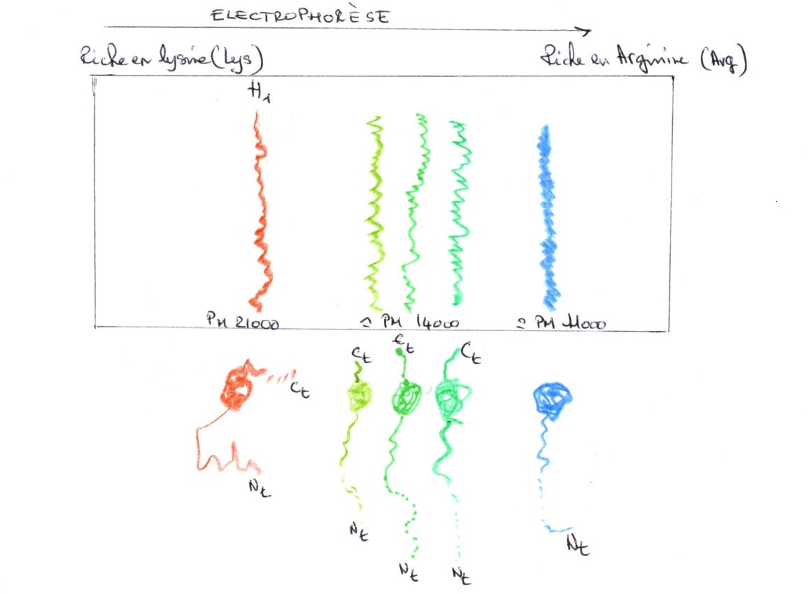 La classe radioactive est conservée, elle contient la sonde et permet une cartographie de chevauchement. L'ordre de succession des 5 gènes codants pour les 5 histones, et toujours la même.