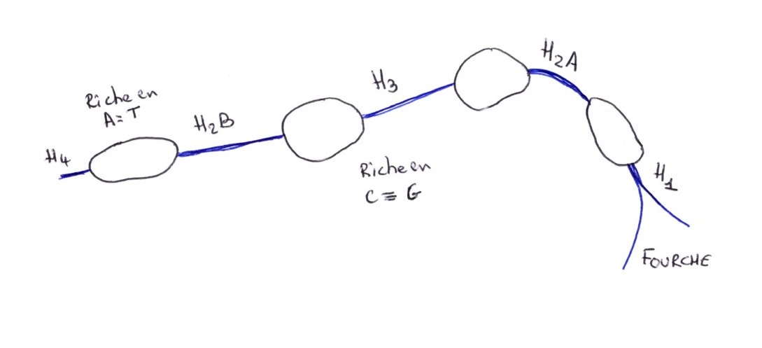 La classe radioactive est conservée, elle contient la sonde et permet une cartographie de chevauchement. L'ordre de succession des 5 gènes codants pour les 5 histones, et toujours la même.
