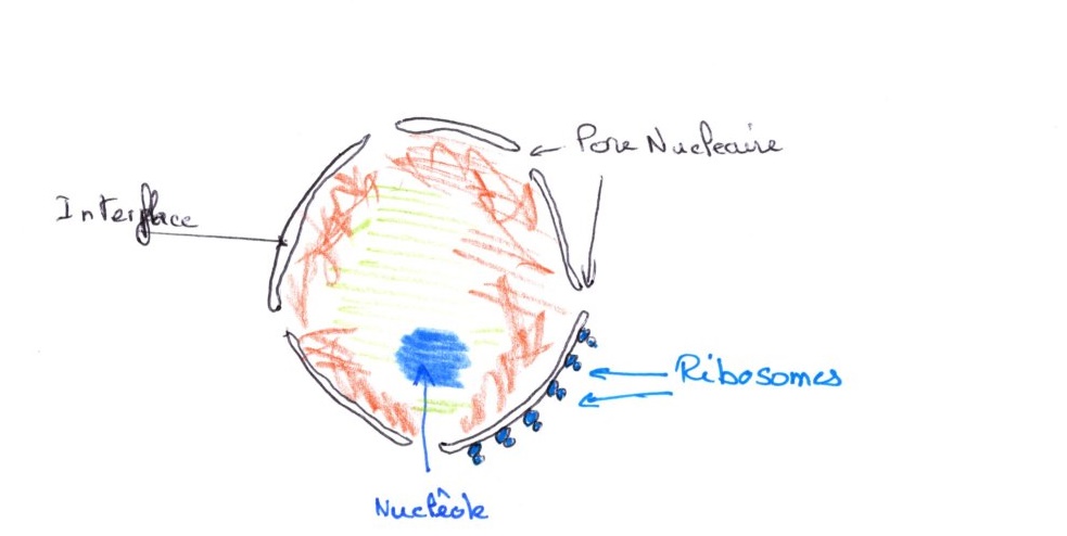 Le nucléole est très dense au microscope électronique, il est riche en protéines et est plus ou moins gros. le nucléoplasme est une phase soluble qui imprègne le nucléole et les deux types de chromatine. les ports nucléaires représentent le lieu de passage des macromolécules entre le noyau et le cytoplasme.