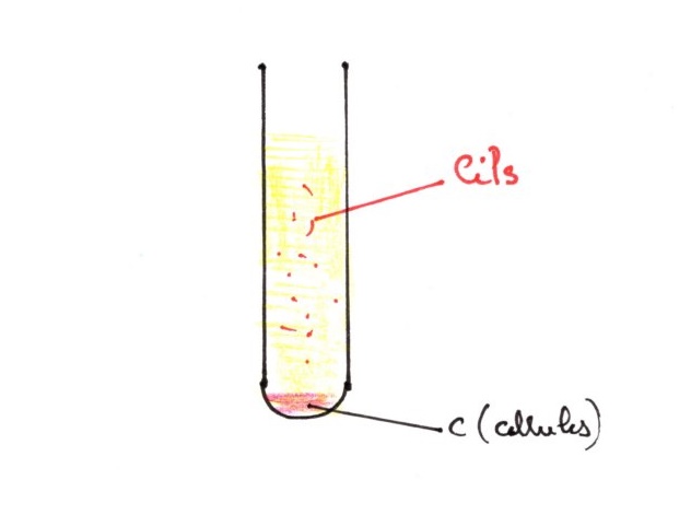 -Puis on ajoute une forte concentration de Ca ++ sous forme de CaCl2 à 25mmol. On observe alors des mouvements brutaux des cils ce qui les cassent à leur base.