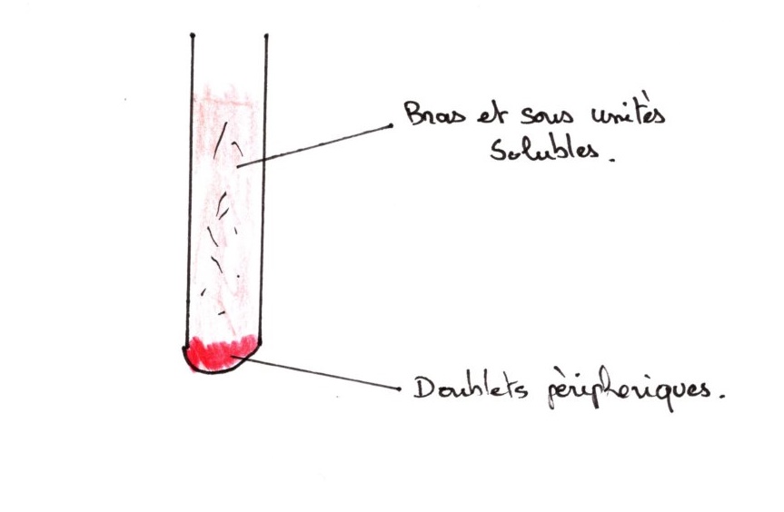 - en solubilise les doublets périphériques dans une solution de force ionique élevée : KCl à 0,6 M qui permet la rupture des liaisons.
